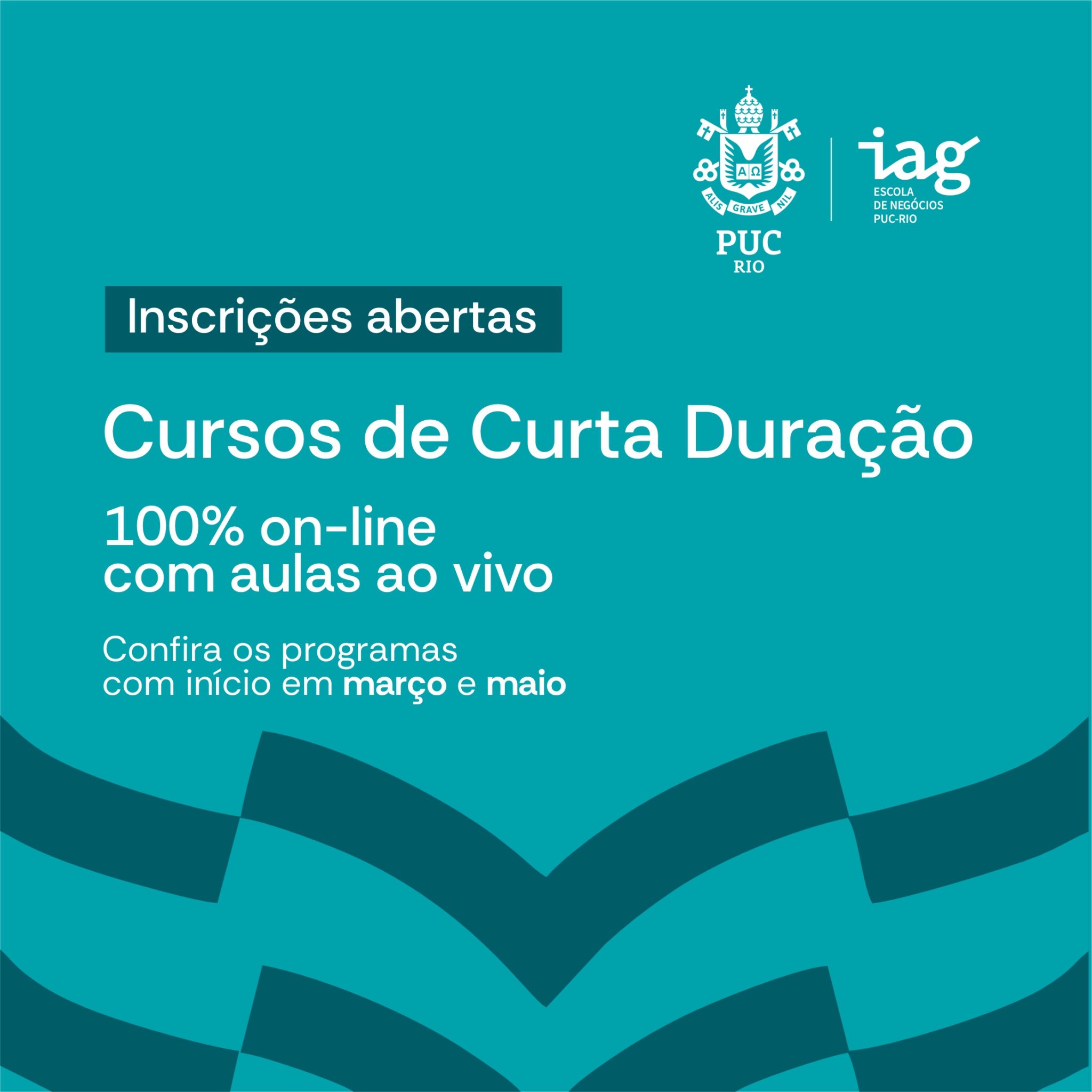 Os Cursos de Curta Duração do IAG PUC-Rio têm até 60 horas, sendo 30% delas ou mais em formato live – professores e alunos juntos em videoconferência. Além de promover networking, os cursos são indicados para quem busca agilidade, conhecimento de ponta e a qualidade de ensino PUC-Rio.