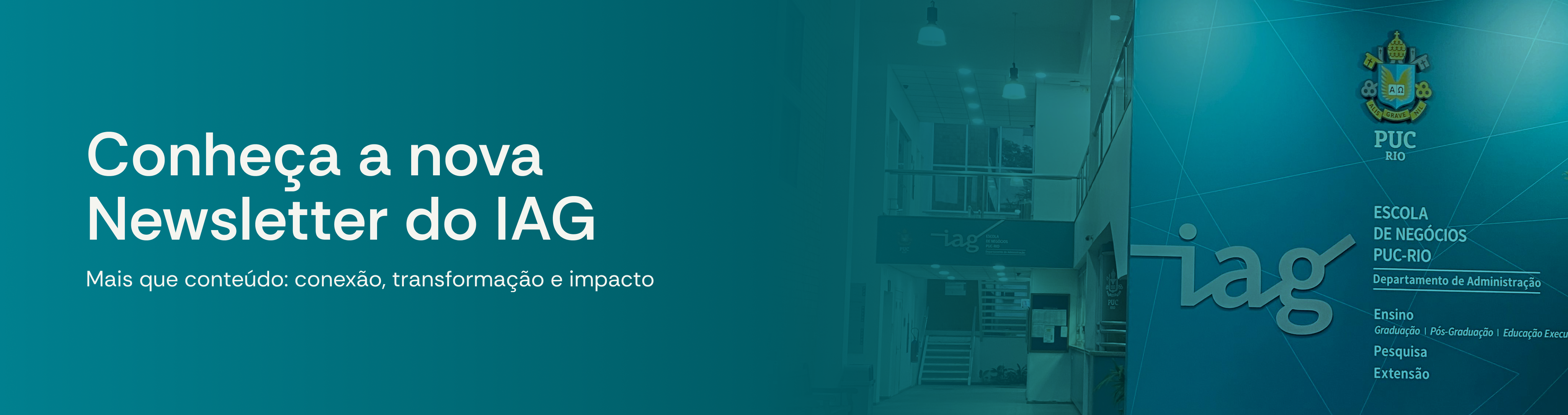 A Pontifícia Universidade Católica do Rio de Janeiro é reconhecida por sua excelência acadêmica em diversas pesquisas e rankings. Destaca-se também por seu compromisso com a sustentabilidade, sendo a primeira do país a elaborar uma agenda ambiental. O campus da PUC-Rio está localizado em um parque ecológico que abriga mais de 200 espécies de flora, onde estão integrados os 27 Departamentos da Universidade. É nesse ambiente interdisciplinar de saberes que está inserido o IAG – Escola de Negócios da PUC-Rio.